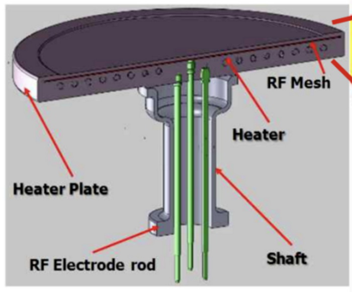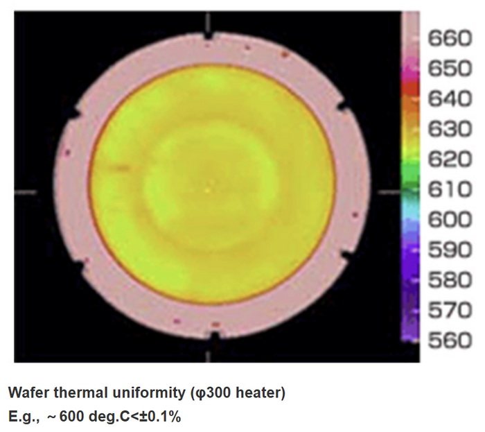 在使用等離子體增強化學氣相沉積(PECVD)設備制備薄膜時,成膜均勻性和膜厚的主要影響因素是等離子體特性和工藝溫度。首先,等離子體的密度和分布直接影響薄膜的均勻性和沉積速率。均勻分布的等離子體可以確?;钚詺怏w在襯底表面充分反應,從而形成均勻的薄膜?。而等離子體能否均勻分布與嵌入加熱器中的射頻網(RF Mesh)密切相關。其次,特定的工藝溫度保證出色的熱均勻性。陶瓷加熱器確保晶圓表面溫度在±1.0% 以內波動。比如日本礙子(NGK insulator) 生產的加熱器溫度波動小于 0.1%,屬于優異指標。
